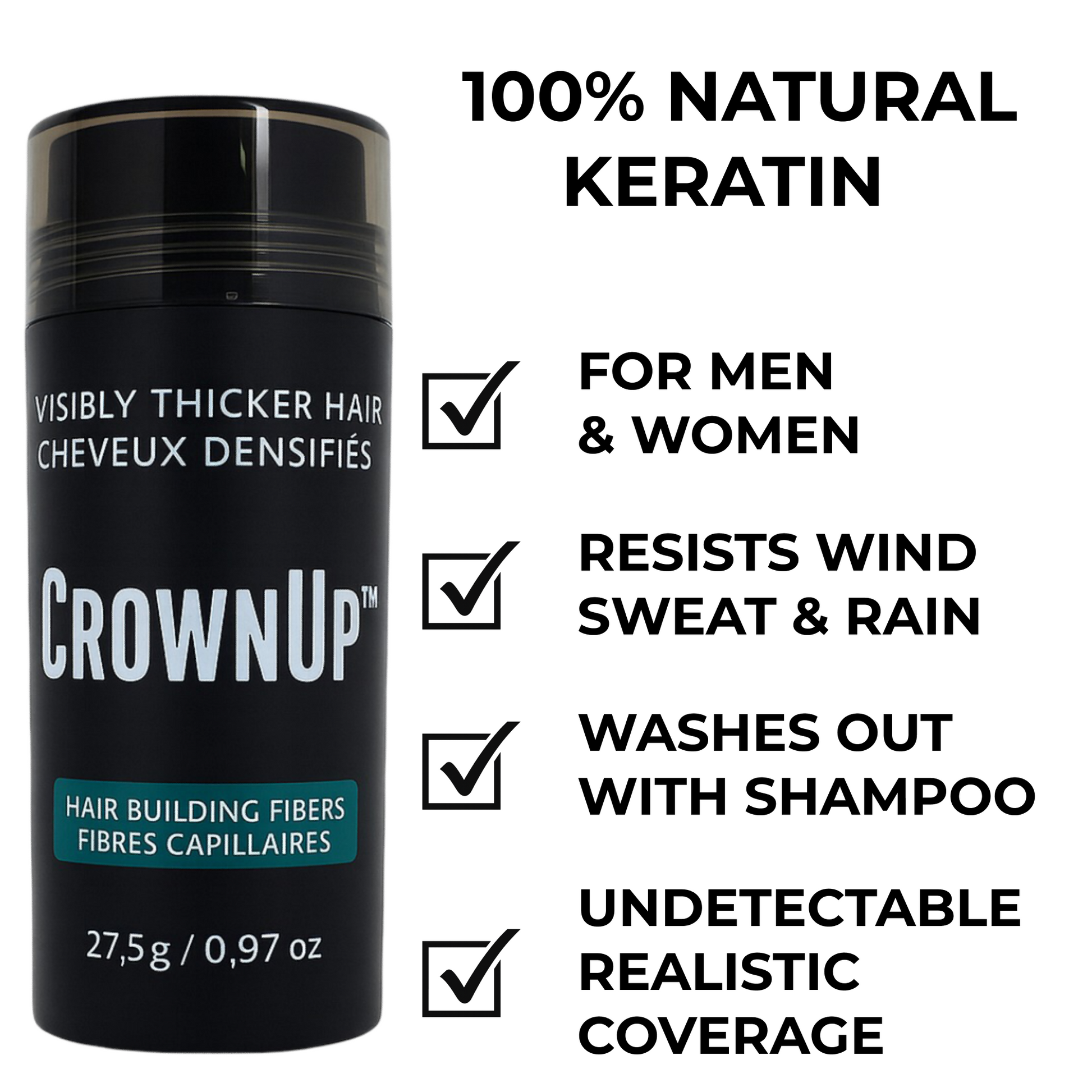 CrownUP Hair Building Fibers – Black 27.5g (Keratin Hair Thickener)